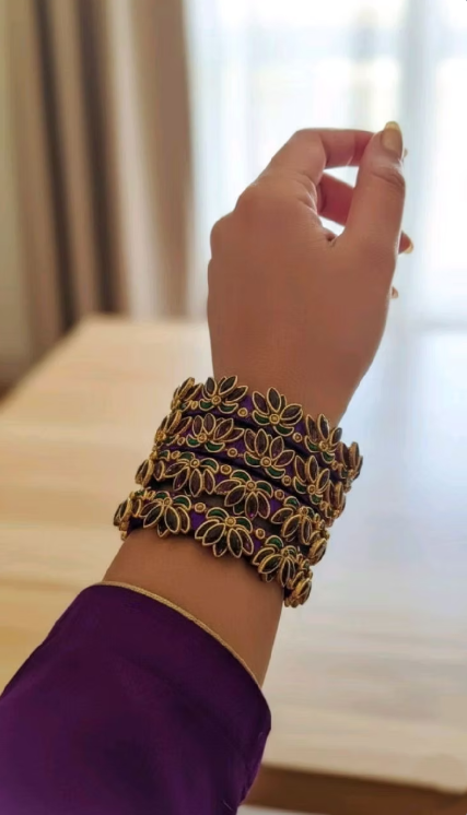 Multicolor Glossy Bangles with Gold Dot Work for Women