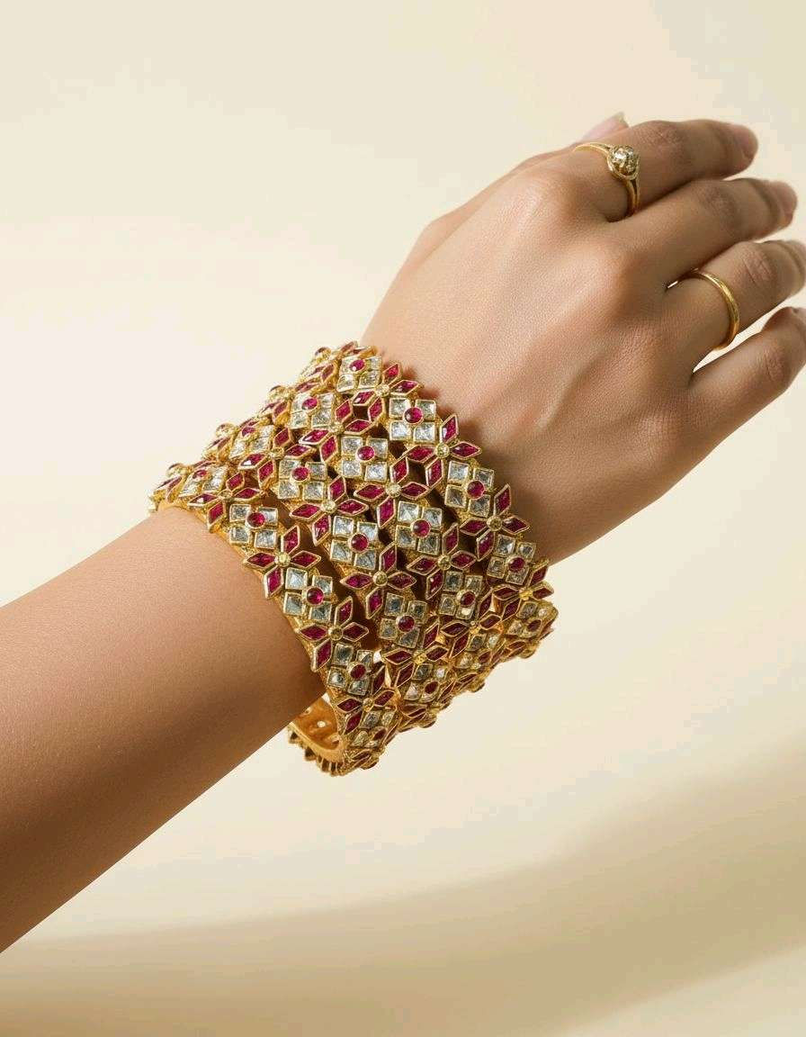 Traditional Gold Finish Pink Stone Bangles for Women | Bridal Wear