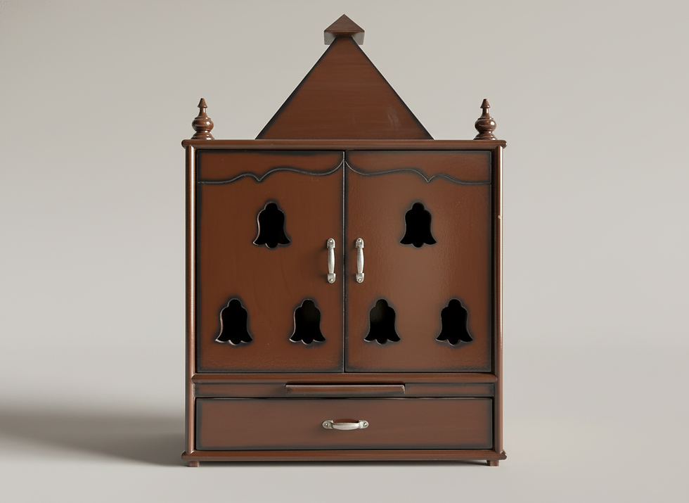 Premium Wooden Pooja Mandir Cabinet with Doors | Home Temple Storage Unit